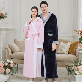 Kadın flanel oneonesonbahar kış uyku erkekler çift kalın kadife salonu flanel pijama bornoz ev tekstili